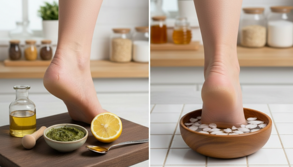 Your kitchen has more than just food; it also has simple, effective skin care products. Olive oil or coconut oil will deeply moisturize your rough, dry heels. Honey helps the skin hold on to moisture and calms down irritated areas. Milk and yogurt are natural ways to make flaky skin softer. Mixing sugar or salt with oil makes a gentle scrub that gets rid of dead skin cells.